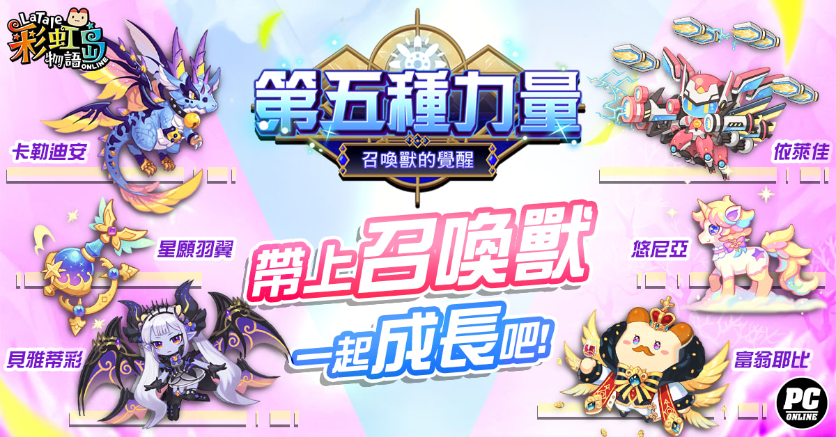 樂意傳播代理的可愛風格線上遊戲《彩虹島物語》夏季二次改版迎接的是「第五種力量」,在領悟覺醒之力,層次躍升後的召喚獸將拓展出更多潛能,成為冒險家更強大的助力!