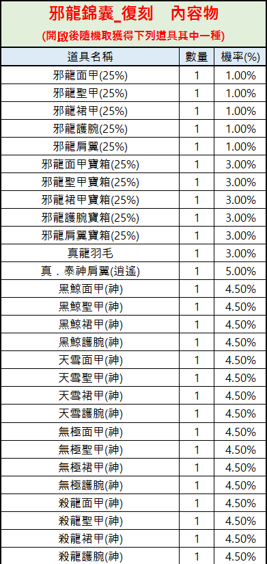 親愛的大俠您好: 目前十二之天2 已開機,還請各位大俠盡速登入遊戲暢玩,造成不便請見諒。 2、邪龍錦囊_復刻 3、魔龍錦囊_復刻